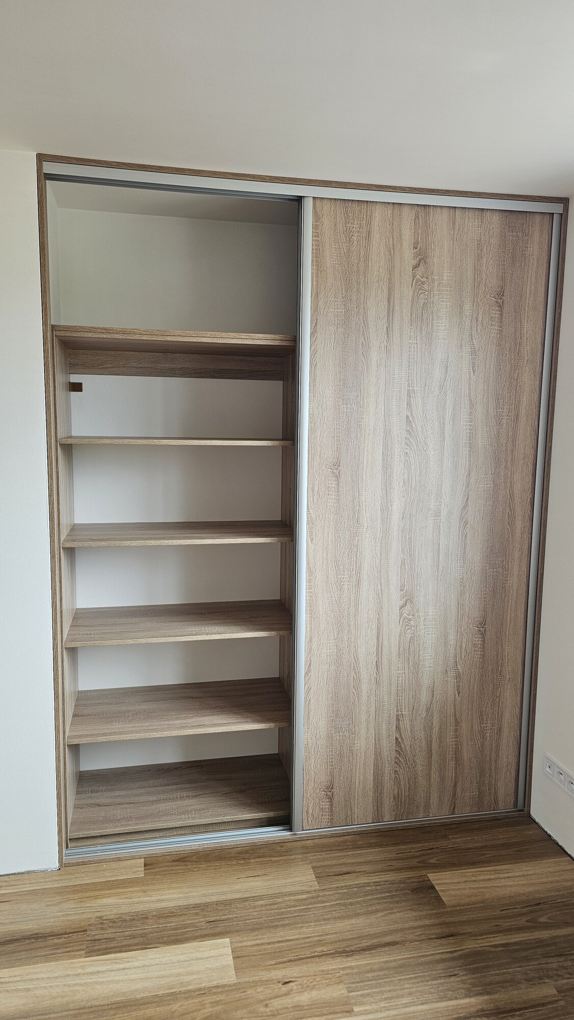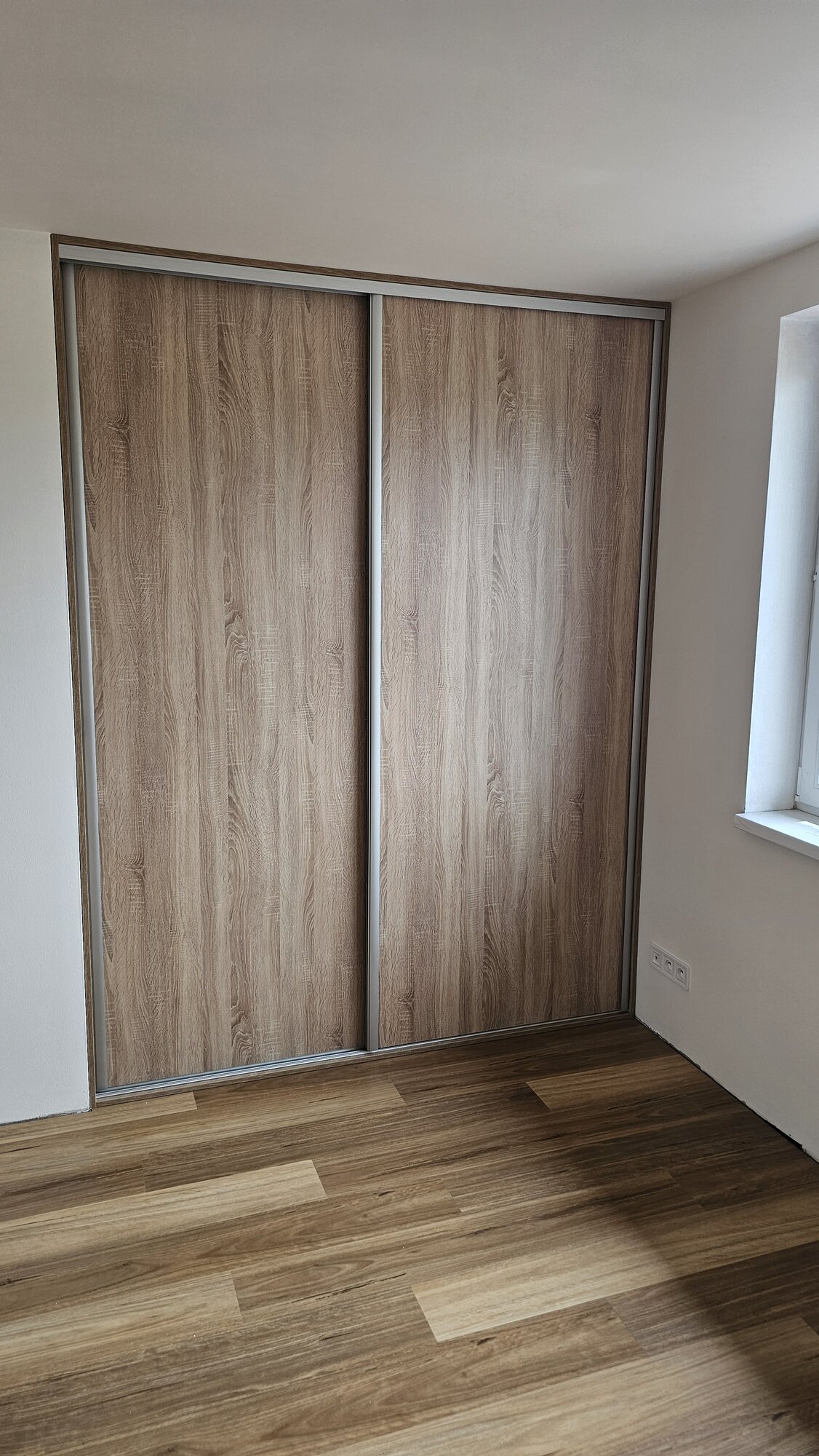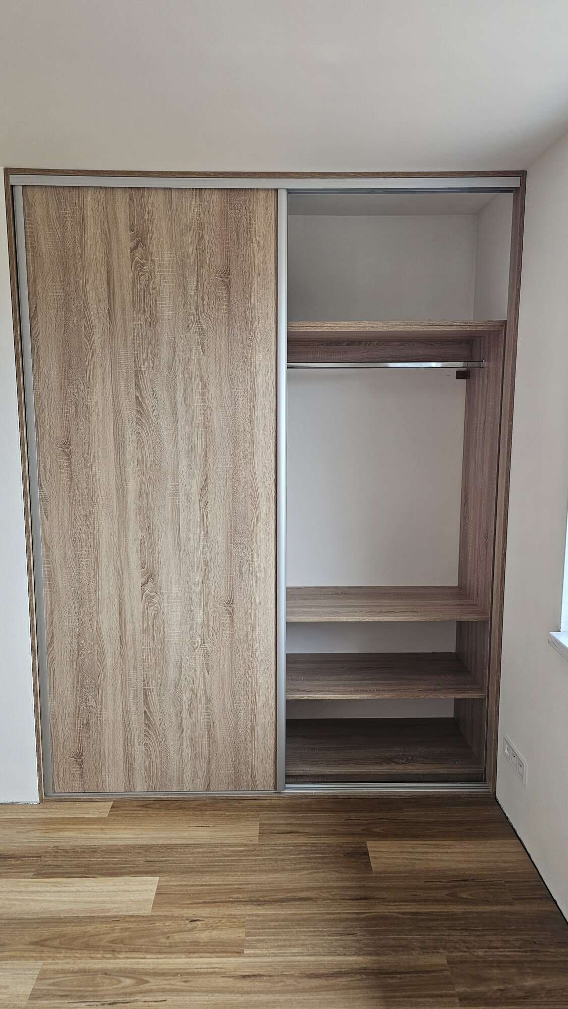Součástí zakázky byla výroba vestavěné skříně, přizpůsobené výklenku ve stěně. Návrh respektoval požadavky na dostatek úložného prostoru i barevného sladění s ostatním vybavením interiéru.