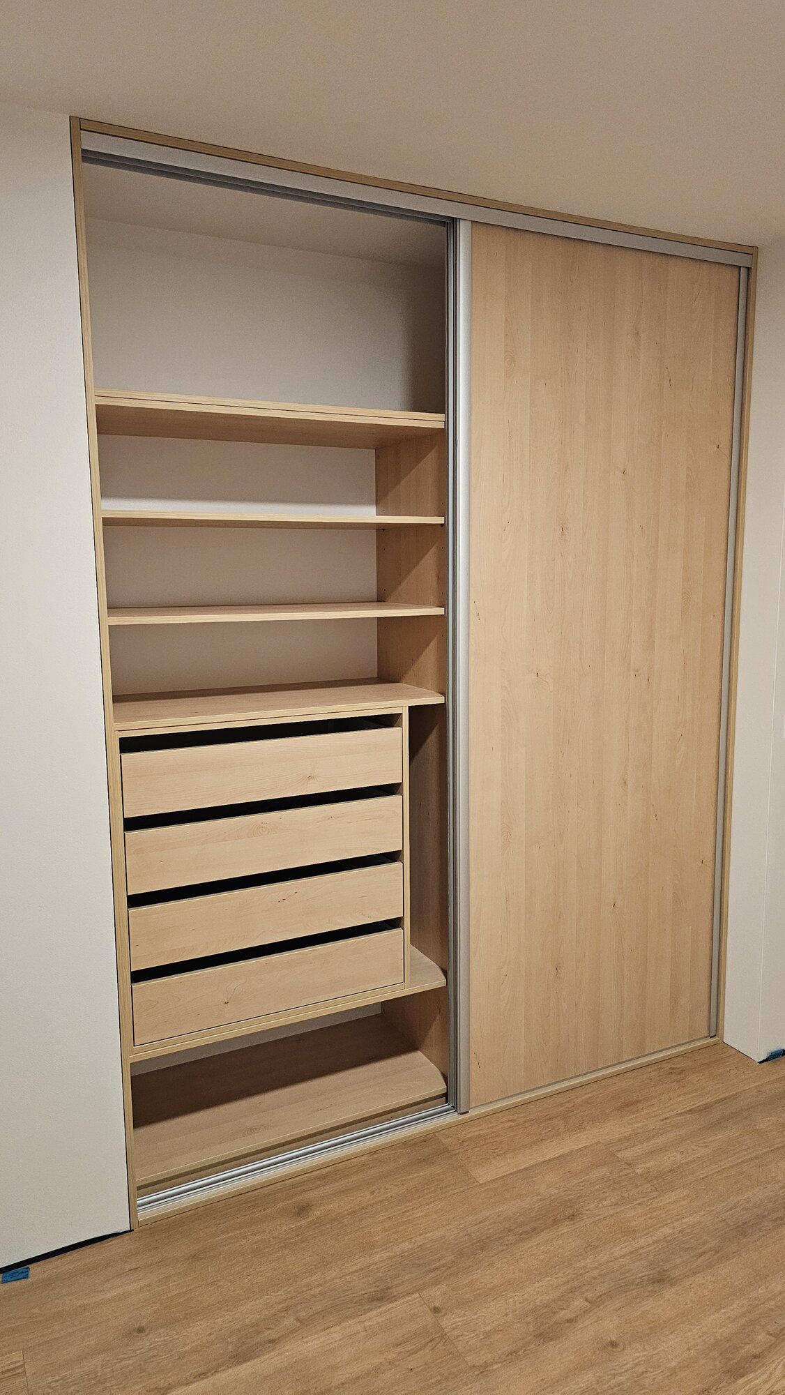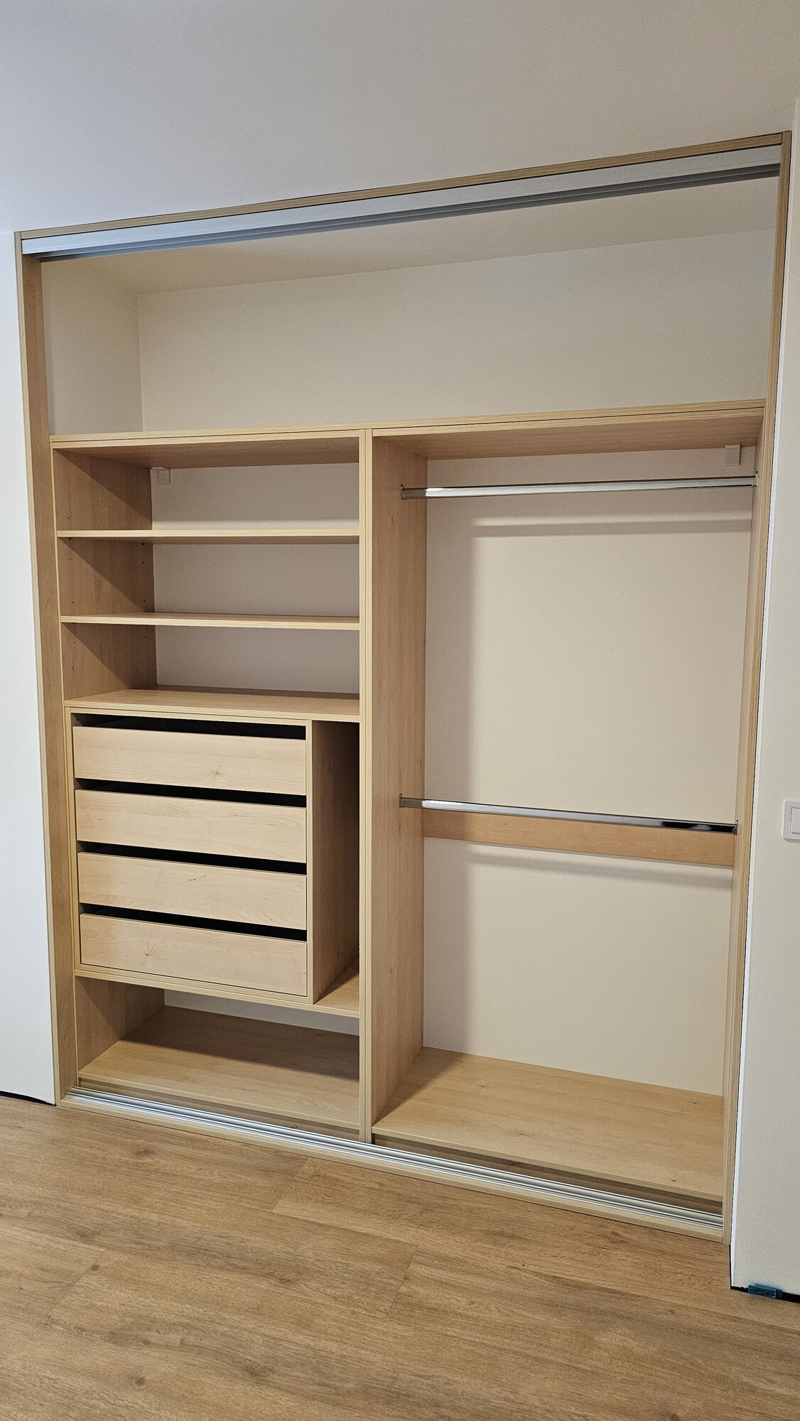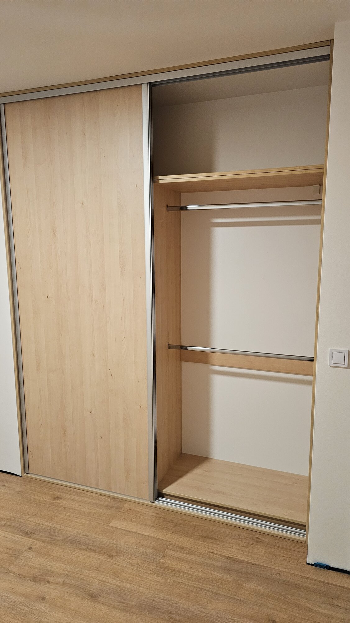Vestavěná skříň navržená přesně do výklenku je ideálním řešením pro maximální využití prostoru. Díky výrobě na míru dokonale kopíruje rozměry niky a působí jako přirozená součást interiéru. Čisté linie a precizní zpracování zajišťují elegantní a kompaktní vzhled.